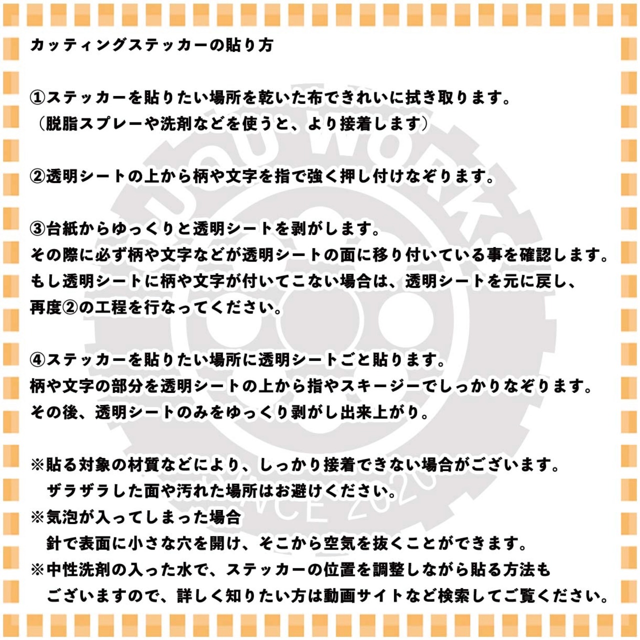 ※ハンドメイドのためアプリケーションシート(透明シート)内に、埃や空気が入る場合がございますが品質に問題はありません。